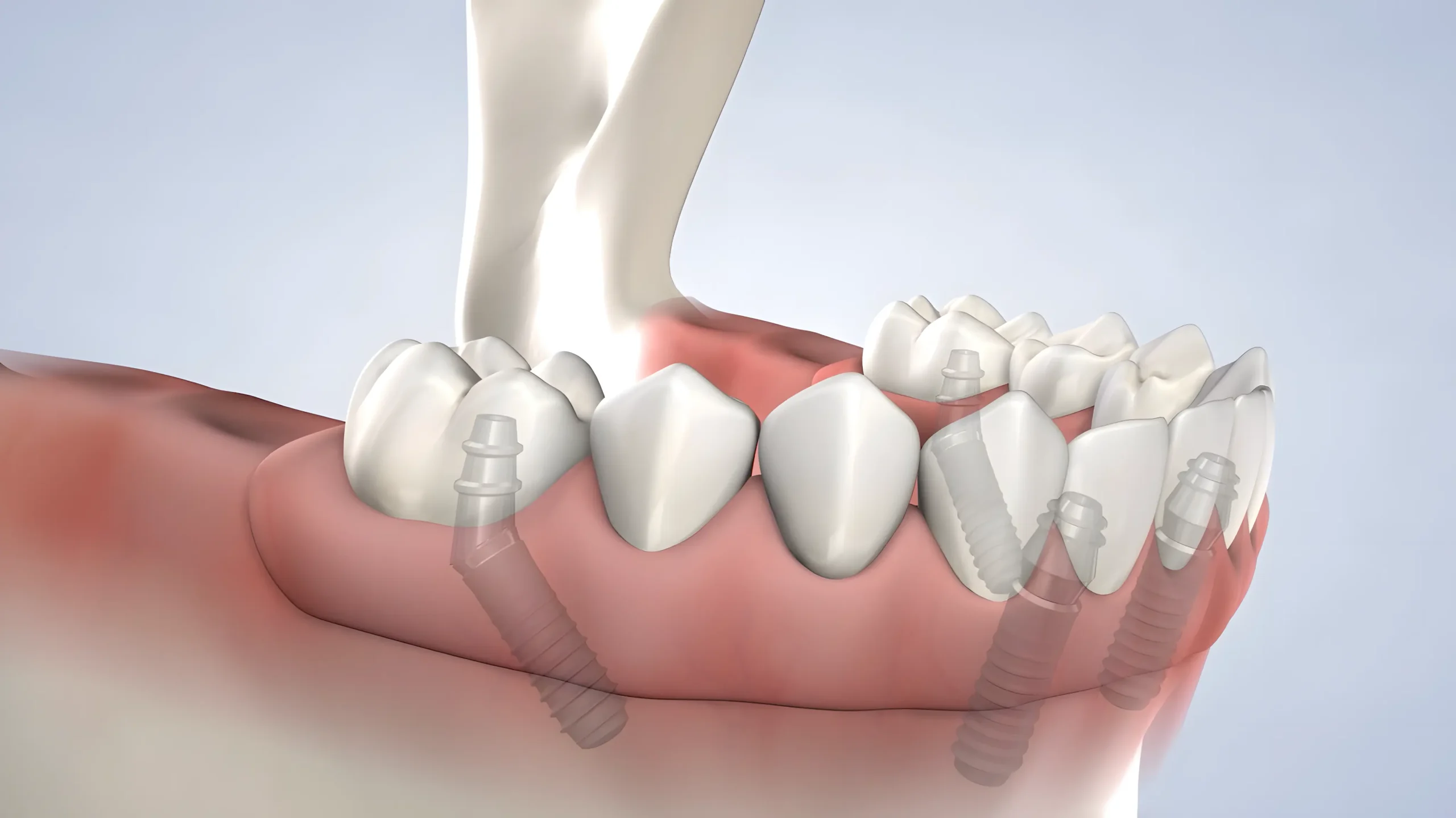 The 4-Hour Smile procedure gives patients who are missing most or all of their teeth a permanent, efficient, and cost-effective solution to completely restore their smile. Dentures used to be the only tooth replacement option for patients missing a lot of teeth, but now this revolutionary procedure allows patients to receive a full set of permanent teeth in just one day. During the dental procedure, a full-arch prosthesis (denture) is permanently fixed in the mouth using as few as four dental implants.